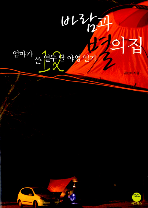 제목인 『바람과 별의 집』이란 말이 참 좋다. 총 열두 번의 야영기록을 읽으면서 순간순간 바람과 별과 함께 누워서 잠을 청하는 상상을 해봤다. 얼마나 멋진 밤이 될지 상상조차 하기 어려웠다. 이 책의 표지는 그래서 참 매력적이다. 밤하늘 아래에 서 있는 키 큰 나무들 그리고 빨간 텐트와 자동차. 표지에는 달도, 별도, 바람도 보이지 않지만 나는 볼 수 있었다. 이울어가는 초승달과 밝게 빛나는 오리온자리의 별들 그리고 구름을 몰고 가는 바람이 내 머릿속에 환히 그려졌다. 수없이 많은 별이 수놓아진 검은 밤이라는 이불을 덮고 잔다는 것은 단지 생각하는 것만으로도 지친 일상의 피로를 날려준다. 그렇게 상상하고 또 상상하며 책을 읽었다. 자연 속에서 보내는 황홀한 하룻밤을 그려보는 것만으로 위안 받으며 나는 지친 일상 속을 헤쳐 나갔다.