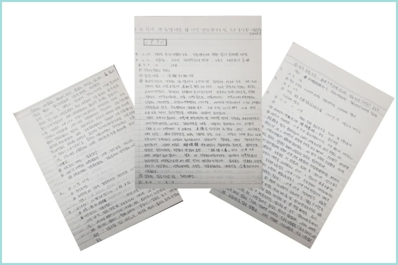 기록 내용을 들여다보니, 1970년 3월 3일부터 10일 간호원협회 회원들이 동정파업을 벌인 사실이 있다. 동정파업(동조파업)은 다른 사업장 일에 연대하여 하는 파업을 이른다. “부산진보건소 간호원 김영자가 69년 말 검찰에 의해 구속 기소되고 3월에 금고 1년 6월의 구형을 받은 데 자극, 전국 간호원협회 회원 6천여 명이 일제히 파업에 들어감으로써 간호원 처우개선을 위한 쟁의는 시작되었다”고 한다. “이를 시발점으로 서울에서는 서울대학부속병원 간호사 190여 명, 우석대부속병원 130명, 메디칼센터에서 230여 명의 간호사들과 전국 주요 병원의 간호원들은 3일 오전 10시부터 4일만인 6일 오후까지 주사행위를 거부하는 파업에 들어갔다.” 어떻게 마무리되었는지는 확인되지 않지만 그해 9월에 다시 파업이 진행되고 이를 계기로 노동조건 개선을 이룬 것은 알 수 있었다. “한편 9월에 들어서 서울대부속병원 및 메디컬센터 간호원 360여 명은 다시 처우개선을 내걸고 집단사표를 제출, 파업에 들어갔는데 이들은 5급을의 대우에서 4급으로 본봉을 인상해 줄 것과 수당 식사보조비의 인상, 휴일근무수당을 다로 지급할 것을 요구. 이들은 25일부터 26일 오후까지 하룻동안 파업에 들어갔다가 당국과의 협의를 거쳐 정상근무에 들어갔다. 그러나 이들은 10월 3일 보복인사 반대 재파업에 들어갔다. 결국 이 간호원의 파업사태는 보사부가 간호원들의 처우개선을 약속함으로써 87시간만에 정상화되었다. 보사부는 간호원 수당을 500% 인상하고 인턴에게도 수당을 지급하겠다는 개선안을 공표하기에 이르렀다.” 이 외에도 3월에 전국금융노조 임금인상 요구 쟁의, 5월 26일 철도노조원 3만3,000여 명 처우개선을 요구하며 쟁의 등 기록이 있다. 이러한 투쟁이 이어지던 때 전태일은 죽음으로 투쟁을 호소한다. 우리는 기계가 아니다, 근로기준법을 지켜라, 내 죽음을 헛되이 하지 말라. “9월 초 평화시장 재단사 전태일은 3만원의 급료를 털어 종업원들에 대한 여론조사를 실시하였는데, 95%가 13~16시간의 과중한 근무를 하고 있으며, 96명이 폐결핵 등 기관지 계통 질환에 결려 있고, 102명이 신경성 위장병으로 식사도 제대로 못하는 열악한 조건에 시달리고 있음을 밝혀냈다. 그는 이 조사결과에 따라 10월 7일 노동청에 작업환경 개선을 요구하는 진정서를 냈다. 노동청은 이 진정에 접한 후 700여 상가 업주에게 근로조건 개선을 지시했다고 하나 그 조치가 유명무실한 것이었음에도 오히려 노동청은 10월 17일 근로조건이 개선되었다고 공식 발표해버렸다.”(1970년 10월23일 경향신문을 기초로 정리) 작업조건 개선은 노동청 진정으로 이뤄질 수 없음을 전태일은 깨달았을 것이다. “11월 13일 전태일을 비롯한 재단사 10여 명은 1) 현재 16시간의 근로시간을 평균 9시간으로 단축해줄 것 2) 한달에 4일은 쉬게 해줄 것 3) 야간 근무수당을 지급할 것 4) ‘시다’ 임금을 인상할 것 5) 작업환경을 즉시 개선하고 매년 건강진단을 실시할 것 등을 업주 대표들에게 재차 호소한 뒤 시장 앞에서 농성을 벌이려 했다. 그러나 이러한 시도가 제지당하고 “우리는 기계가 아니다” “근로기준법을 준수하라”고 쓴 프랑카드도 압수당했다. 이에 격분한 전태일은 근로기준법을 준수하고 내죽음을 헛되이 하지 말라는 유언을 남기고 온몸에 석유를 뿌리고 분신함으로써 그들의 주장을 호소했다.” 이 조사노트는 법학을 전공한 한 연구자가 한내에 기증한 것이다. 80년대 중반 논문을 쓰기 위해 기초 조사를 했던 필사 자료다. 출처는 그동안 발간된 책, 신문 등이다. 당시는 신문 기록 디지털화 전이라 도서관에 가서 일일이 베껴 썼던 자료들일 것이다. 이런 기록물을 보면서 “현장을 꼼꼼히 살피며 논문을 쓰는 정성”이 새삼스럽게 다가왔다. 그리고 노동운동의 전환을 이루는 투쟁은 어느 날 갑자기 발생하는 게 아니라 지속적으로 이어진 투쟁의 결과라는 것을 다시 확인하게 된다. |