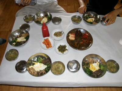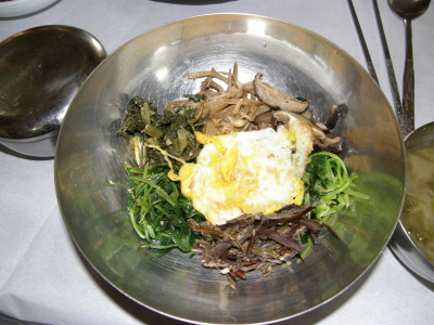 산행준비를 하면서 시킨 것은 산채비빔밥이었다. 맛깔스럽게 담겨 나오는 음식들은 허기를 더욱 더 부채질 한다. 후덕한 아주머니의 모습은 영.호남의 무거운 인식을 잠시 잊게 해 주었다. 모자라는 것은 채워주시고 모든 것이 자연산이라고 안심하고 먹으라는 아주머니의 모습이