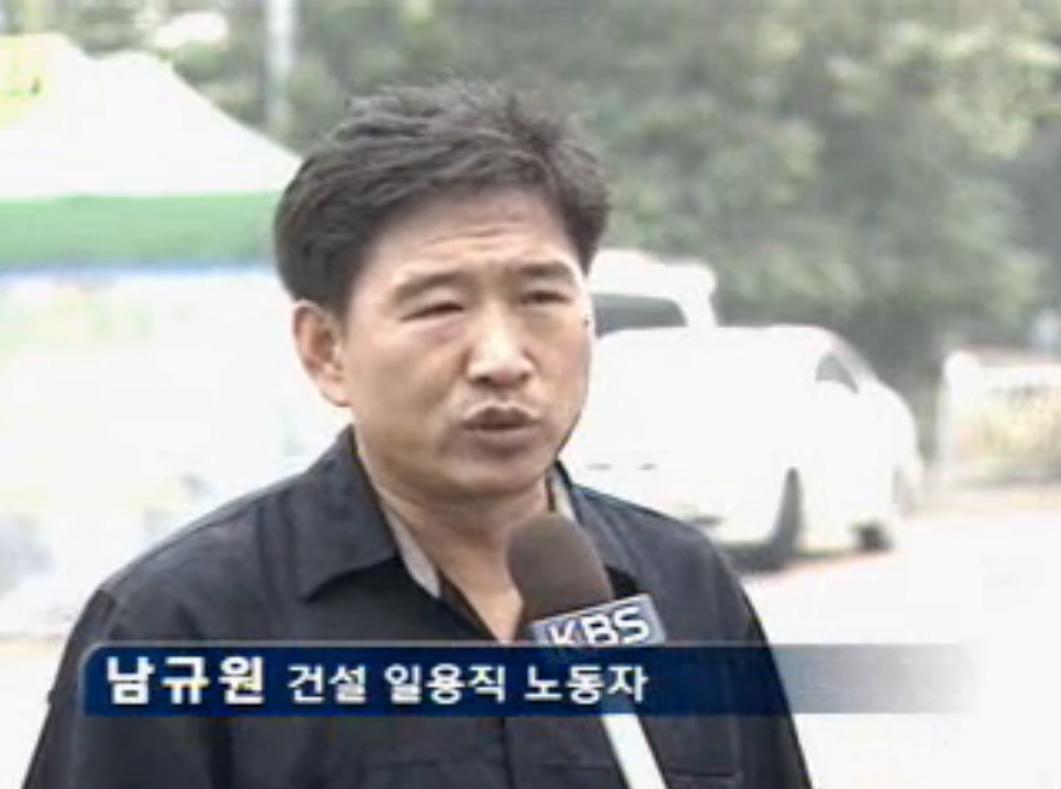 사진: KBS. 2006년 포항건설노조 포스코투쟁 당시 남규원의 인터뷰 모습.