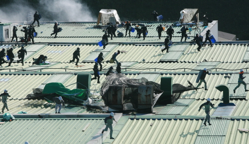 <2009년 8월 5일, 쌍용자동차 평택공장 진압장면. 사진 : 노동과세계 이명익 기자>