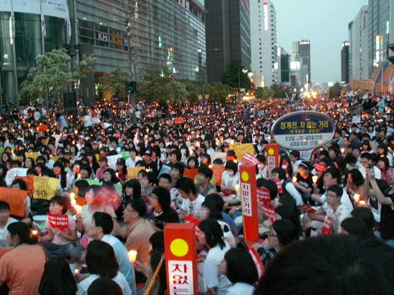 촛불시위가 한창이다. 많은 사람들은 시위축제, 아래로부터의 직접 민주주의 꽃, 제어할 수 없는 시민들의 끼라는 등 온갖 수사를 동원해도 모자랄 판이다. 명박이는 6월 10일, 청와대 뒷산에 올라가 이슬을 맞으면서 대체 얼마나 많은 사람들이 시위에 참여하고 있는가를 확인하고 난 뒤, 정말 많은 사람들의 촛불 앞에서 인간적인 고통을 느꼈다고 하면서도 ‘협상무효, 고시철회, 명박퇴진’ 등의 요구 앞에서는 당당하게 버티고 있다.