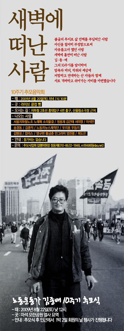 ..... [안내] 노동운동가 김종배 10주기 추모식과 음악회 안내
