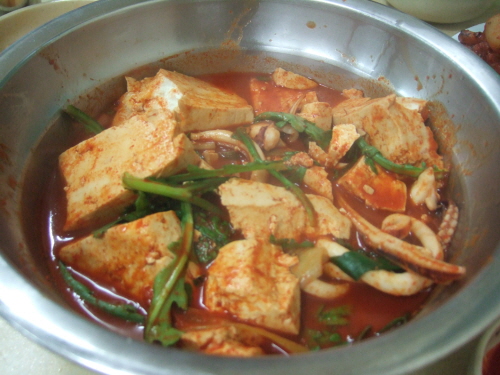 한국통신 계약직으로 근무할 때 함께 근무하던 형님들을 따라 갔던 적덕식당은 매우 허름하고 어두침침했지만 찌그러진 양재기에 수북이 담겨 나오는 김이 모락모락 나는 두부를 보면 금세 그런 건 개의치 않게 된다. 보기만 해도 매울 정도로 빨갛지만 청양고추 다대기를 더 넣어야 제 맛이라며 한 수저를 푹 넣고 떠먹으면 순식간에 이마에 땀이 맺힌다.