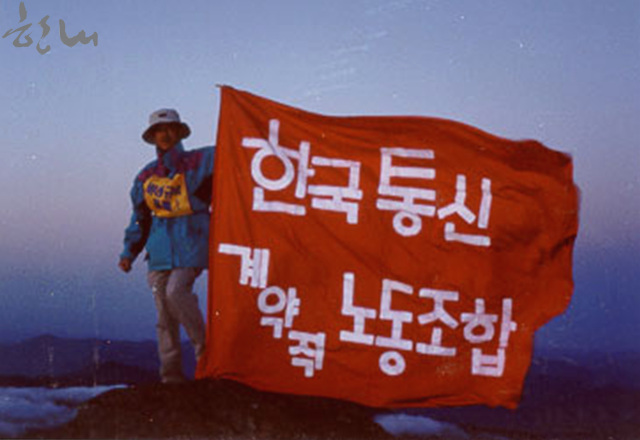 지리산 천왕봉에 휘날린 한국통신계약직노동조합 깃발