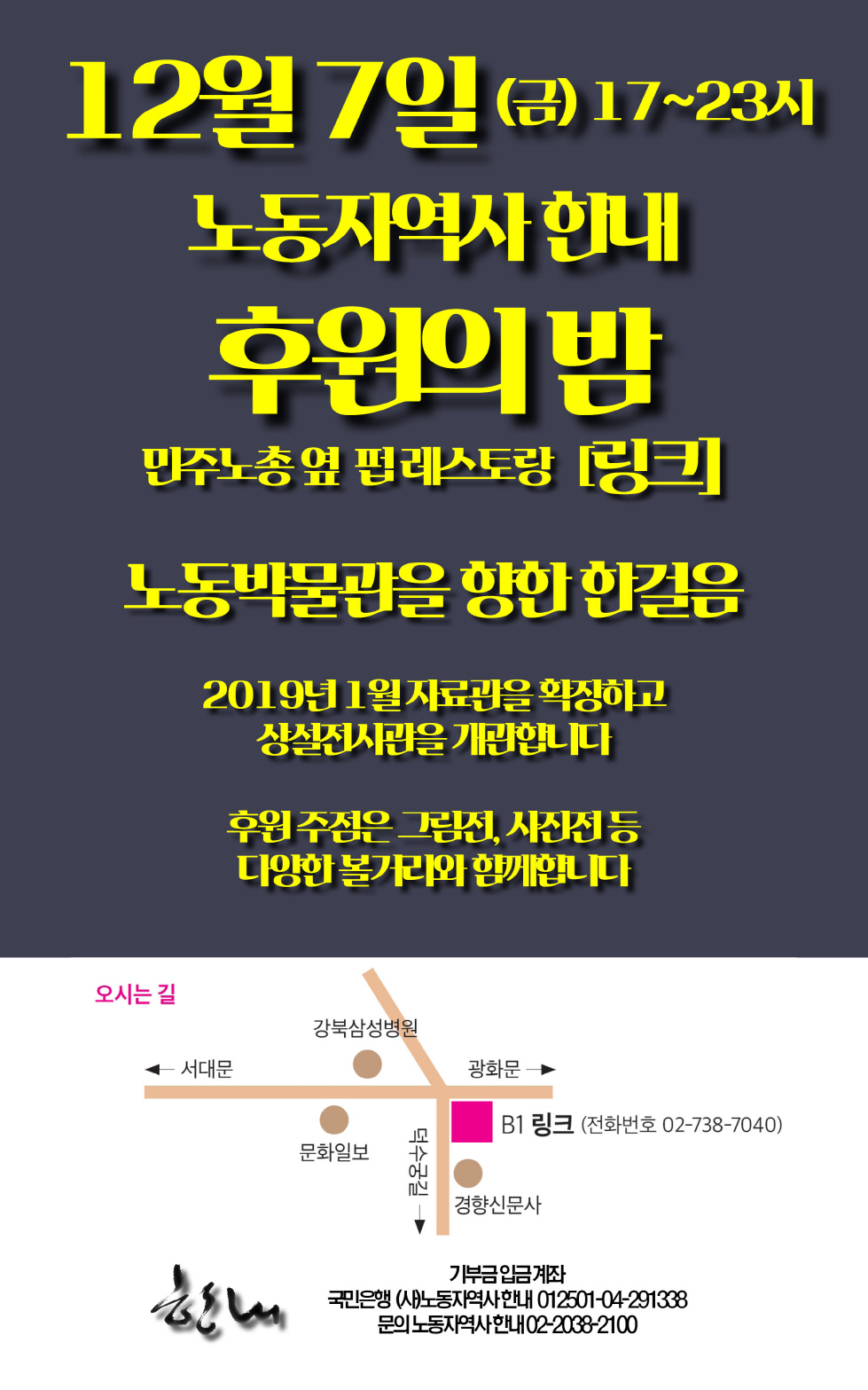 다음글 노동박물관을 향한 한걸음_한내 노동아카이브 확장과 전시관 마련을 위한 기부금 모집