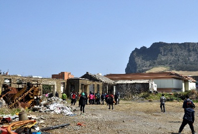 오후만 되면 서북청년단에 의한 총소리가 한동안 그치질 않았다고 한다. 심지어 그곳을 지키던 경찰조차 그 잔혹함에 놀라 입이 돌아갔다는 후문이 있을 정도다. 그 학살 장소가 터진목 학살터다. 도로변에 큰 돌로 4.3유적지 표지가 있는데도 성산을 지나면서도 그냥 지나쳤던 곳이다. 터진목의 풍광은 눈을 시리게 할 정도다. 성산일출봉과 앞바다가 한눈에 들어오는 이곳이 죽음의 장소였다니. 우리는 그곳에서 묵상을 했고, 최도은 동지의 노래를 들었다. 잠들지 않는 남도... 한라산이여.... 영령들의 한을 달랬다.