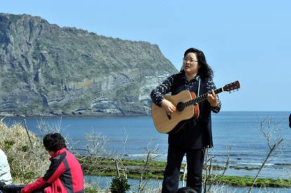 <터진목 학살터에서 바라본 성산일출봉 그리고 최도은 동지>