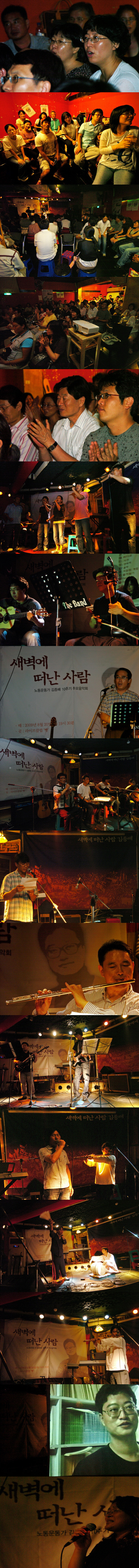 노동운동가 김종배 10주기 추모음악회가 지난 8월 20일 저녁 7시 30분, 홍익대 인근 라이브클럽 ‘빵’에서 열렸습니다. 이날 모인 100여 명의 회원, 가족, 지인 등은 떡과 술, 다과를 즐기며 음악을 즐겼습니다. 서울지하철노조 노래패 소리물결의 공연과 정용재, 김건태, 서미영 동지의 해금을 기본으로 한 퓨전 음악, 이석만 님의 노래, 송경동 님의 시 낭송, 김종배열사의 셋째 형님인 김종익 님의 플룻 연주 등이 있었으며 우지용 우듬지 김병성 님의 국악 및 대금 연주, 잡리스의 공연, 한내 대표이신 양규헌, 황금춘, 안그라미, 엄진령 님의 합주, 최도은 님의 노래 공연이 이어졌습니다.