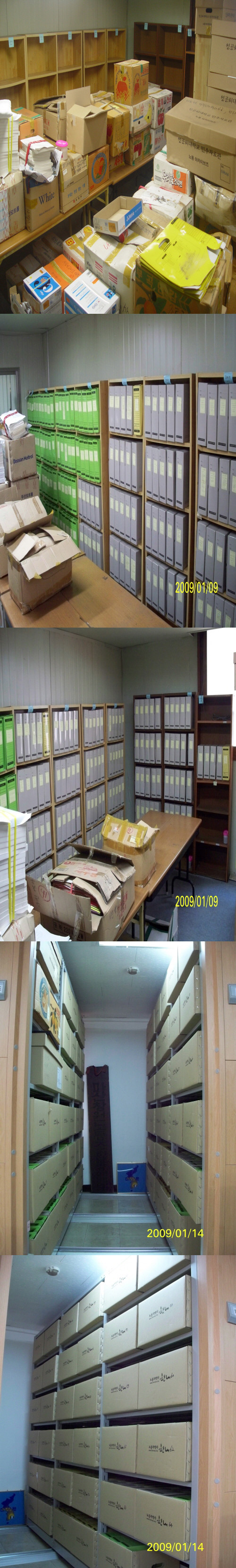 마창노련기록물전산화추진위원회에서는 2009년 7월 6일부터 진행 중이던 마창노련 미정리 기록물에 대한 가정리 작업을 지난 8월 25일에 마무리했습니다. 총 65상자의 각종 미정리 기록물이 약 260여 문서보존상자/1,250여권의 철로 정리되었습니다. 작업자 1명이 꼬박 두달여 여름내 흘린 땀의 결과입니다.