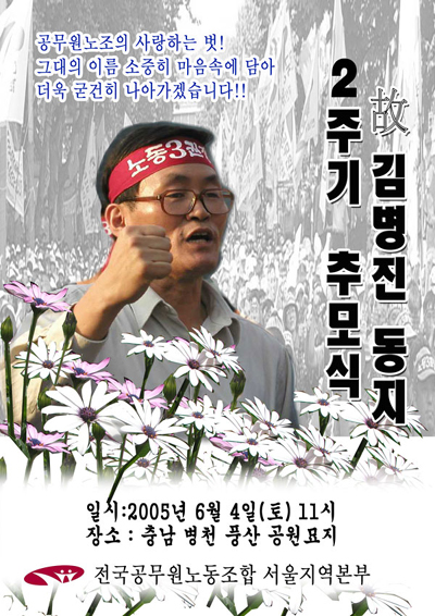 1999년 9월에 서울지역에서 최초로 강동구공무원직장협의회를 건설하여 서울지역 공무원노조의 초석을 다진 고 김병진 본부장님.