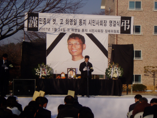 하영일 동지는 2001년 경남공무원직장협의회연합(경공련)에 사무차장으로 들어와 2006년까지 지역본부에서 묵묵히 활동하던 동지이자 두 아이의 아빠였다. 연배도 나와 비슷하고 학생운동의 경험도 비슷하여 내게는 형 같은 동지였다.