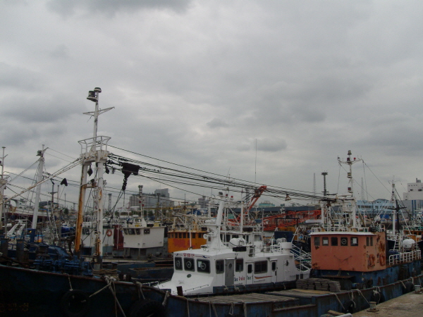 다시 찾은 연안부두엔 여전히 고깃배가 가득합니다. 경매가 끝나 텅 빈 수협공판장 앞 부두에 늘어 선 고깃배들의 깃발과 쇠줄로 눈앞이 어지럽습니다. 그 너머엔 중국으로 가는 국제여객선이 출항을 기다리고 있습니다. 이 연안부두에 드나드는 사람들마다 숱한 사연을 갖고 있겠지요. 바다 위를 떠도는 이들의 무수한 사연을 모두 합치면 짙푸른 바다색이 되지 않을까요.