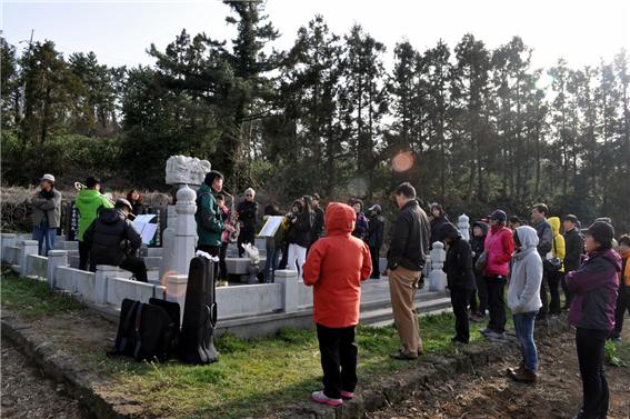 숨죽여 살아야 했던 세월이었다. 이덕구 할머니 묘의 비석은 토벌대에 의해 부서진 채 가족묘역으로 옮겨졌다. 이것이 무장대 가족들의 현실인 것 같다. 새로운 사회 건설의 꿈을 제일 앞에서 실천했던 이덕구와 그의 가족들은 찾는 이 없는 가족묘역에 묻혀 있다. 기행단에서 열심히 준비하여 영혼제 형식의 연주를 했다. 아직은 찬바람이 세차게 부는데, 기타와 아코디언 그리고 색소폰 소리가 왠지 모를 쓸쓸함을 더했다.