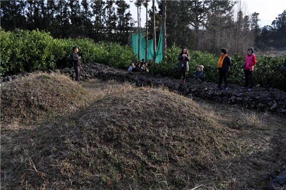 다음으로 간 곳은 인민위원회 위원장 안세훈의 묘였다. 귤 농장 한가운데 비석도 없는 무덤이니, 안내자가 없었다면 누구의 묘인지도 모르고, 다음에 다시 찾기도 힘들 것 같다.