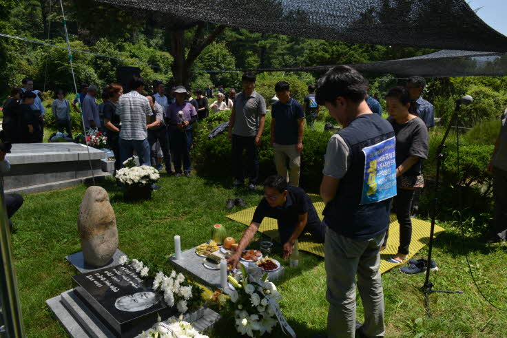 이승원 동지 1주기 추모제가 7월 21일 모란공원 묘역에서 열렸습니다. 무더위에도 동지를 기억하는 많은 분들이 함께했습니다.