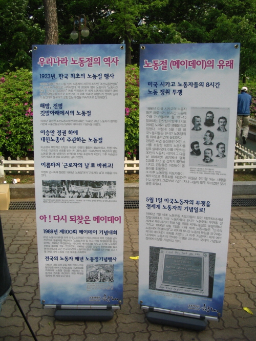 문제풀이 행사와 함께 노동절의 유래와 역사를 담은 유인물 5,000여부를 현장에서 배포했습니다. 그날 배포된 수많은 유인물 중 노동절의 유래와 역사가 담긴 것은 한내의 것이 유일했습니다. 노동절의 유래와 의미를 설명하는 한내의 유인물에 많은 노동자분들이 반가워 하셨습니다. 현재의 사안과 분노와 고민을 담은 이야기들 속에서 노동절의 역사와 의미를 되새김할 수 있는 기회를 드릴 수 있었다는 것에 노동자역사 한내 본연의 역할을 다시 느끼는 보람 있는 경험이었습니다.