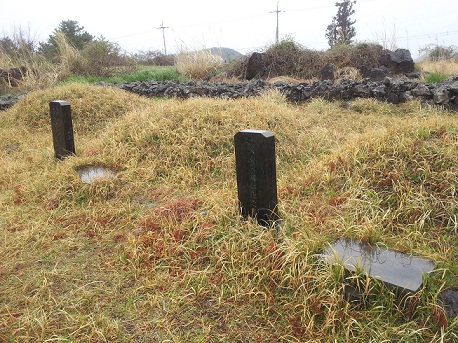 첫 번째 방문지는 임문숙 가족 헛묘이다. 헛묘는 시신을 묻지 못한 묘를 말한다. 시신을 찾지 못한 유족들이 봉분만 세운 것이다. 임문숙 가족 헛묘는 서귀포시 동광리에 있다. 봉분이 7개 있지만 모두 헛묘이고 2기는 합묘이다. 1948년 11월 중순 토벌대가 초토화 작전을 시작하자 동광 큰넓궤에 피신생활하던 동광리 주민들은 넓궤가 발각되자 한라산으로 더 깊이 숨어들었다가 토벌대에 의해 체포되어 정방폭포 위에서 집단학살 당했다. 내가 레드헌트를 통해 기억하는 정방폭포에서 희생된 주민들이 바로 이들이었다. 바다로 바로 떨어지는 폭포에서 학살당한 사람들은 시신을 찾을 수 없었다. 파도에 떠내려갔기 때문이다. 정방폭포 위에서도 학살이 있어 찾아간 유족들은 구덩이에 시신들이 엉켜 누가 누구인지 알 수 없을 정도라 헛묘를 세울 수밖에 없었다 한다. 시신이 있던 구덩이를 본 사람들은 시신들이 엉켜 살이 썩어있던 당시 상황을 젓갈 같다고 증언했다. 감히 상상할 수 있는가. 죄 없는 사람들이 억울하게 죽어간 것도 원통한데 그 주검마저 그토록 처참한 모습이란 것이.