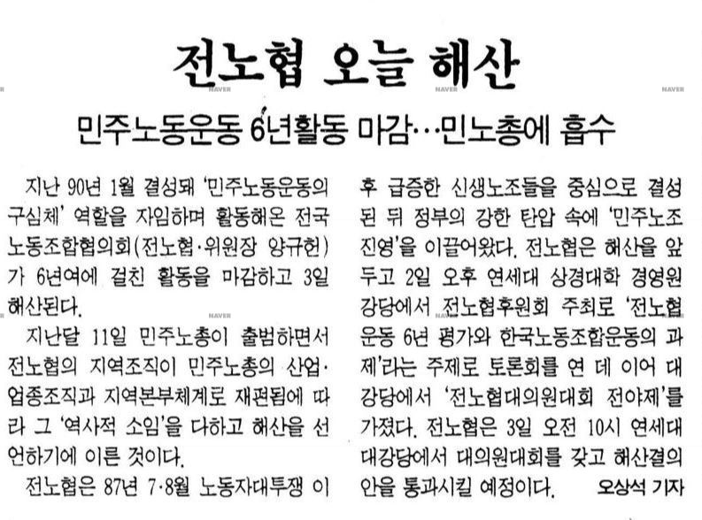 전노협후원회는 1995123일 전노협해산에 앞서 전노협 6년 운동 평가토론회를 열었다. 전노협의 역사적 의의를 정리하면서 이후 민주노총이 나아갈 길을 밝히는 토론회였다. 그리고 전노협후원회는 남은 회비로 전노협 백서발간위원회에 복사기를 증정했다.