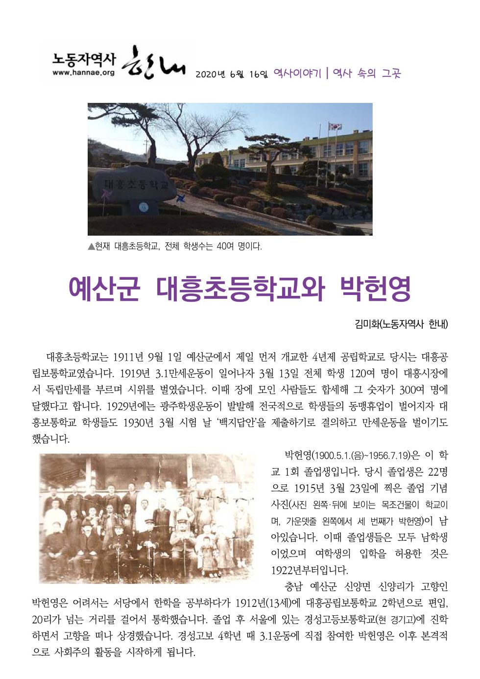 ..... 역사속의 그곳_대흥초등학교와 박헌영