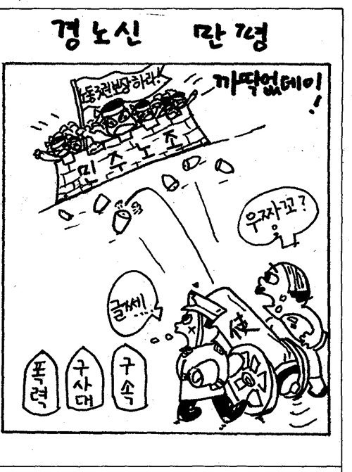 <경남노동자신문 2호에 실린 만평. 1987.9.18> |