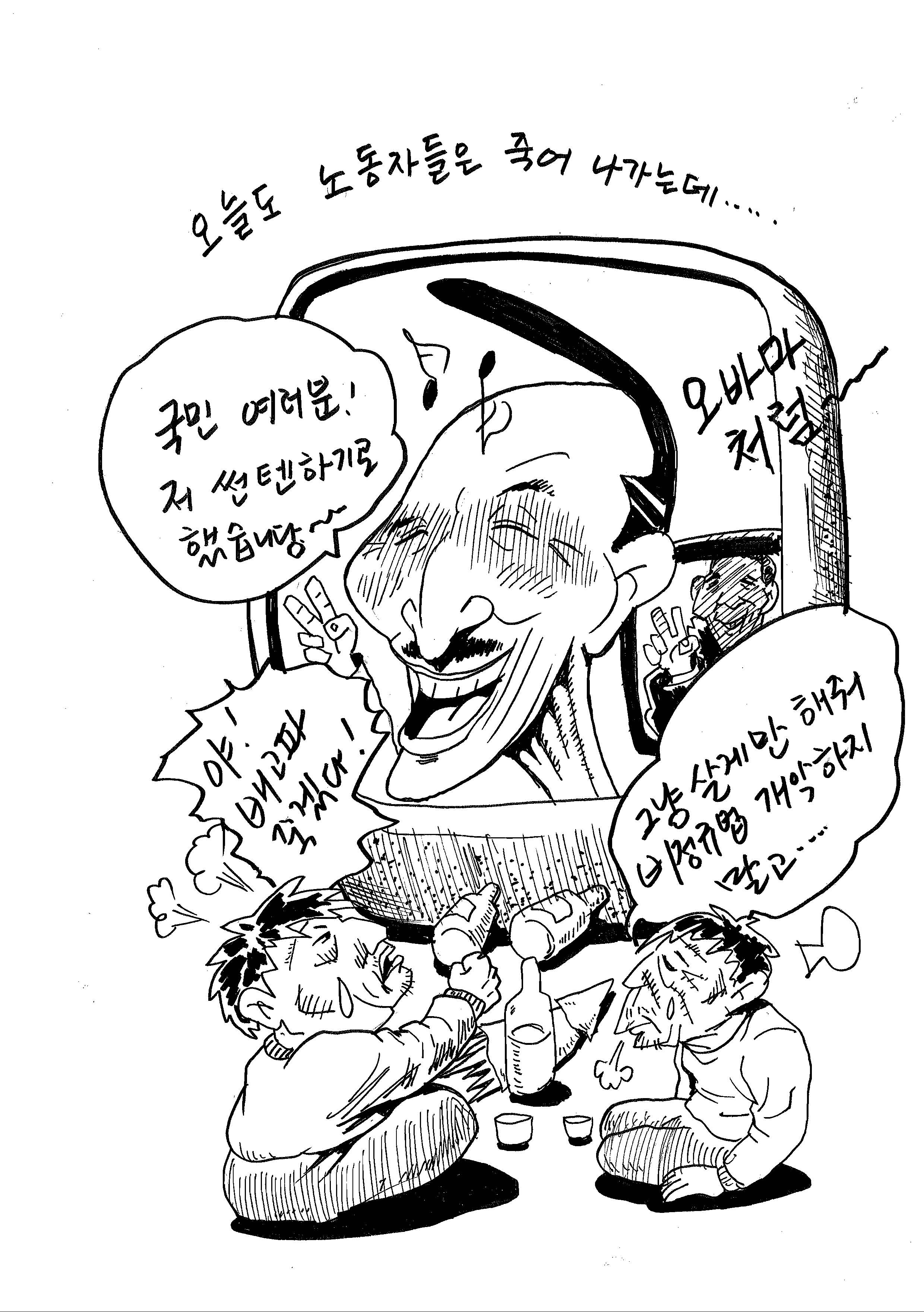 만평을 그리신 분은 애니메이션노조 위원장이고, 현재 서울지역비정규노조연대회의 의장으로 활동중인 류재운 님입니다. 다달이 노동자만평을 그려주시는 류재운님께 다시한번 감사드립니다.