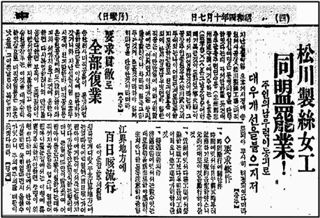 충주 송천제사공장 동맹파업 기사. <중외일보> 1929.10.7. 불과 며칠이 지난 10월 8일 근처에 있는 소천제사공장(충주읍 본정)에서도 노동자들이 동맹파업에 돌입했다. 그날 27명 중 18명은 평소와 달리 점심시간보다 이른 오전 11시에 점심을 먹었다. 일본인 공장주가 이를 힐책하자 18명 노동자는 파업을 단행하고 집으로 돌아갔다. 그들이 이른 점심을 하게 된 사정은 이렇다. 노동자들이 제사공장에 출근하면 오전에 켤 고치를 각자에게 분량을 정해주고 그것을 끝마쳐야 점심을 먹게 했다. 일이 능숙한 사람은 오전 10시에 시작해도 12시경엔 끝내서 점심을 먹을 수 있지만 일손이 늦은 사람은 오전 3~4시에 시작해도 오후 3~4시까지 점심을 못 먹게 되니 평소 불만이 쌓인 상황이었다. 그리하여 10월 8일 당일 노동자 전원이 상의하여 오전 11시 모두 일을 중지하고 같은 시간에 점심을 먹었다. 일본인 공장주는 일할 직공은 얼마든지 있으니 절대로 타협하지 않을 거라며 강경한 태도를 보였고 파업지도부 역시 기세등등하여 지구전을 전개하였으나 10여 일이 지나 결국은 4명이 해고되고 나머지 노동자들은 복귀하는 것으로 타결되면서 파업은 끝이 났다. 일제 식민지시기 노동자들의 노동조건과 생활실태는 엇비슷하여 극심한 결핍과 빈곤에 노출되었다. 특히 여성유년 노동자들의 상황은 더 비참했다. 여성은 기혼과 미혼을 막론하고 임노동을 통해 생계비를 벌어야 했고 여성노동자의 임금은 흔히 말하듯이 단순히 가계를 보충하는 차원이 아니라 가계유지에 필수적이었다. 1920년대 일본 독점자본이 제사 및 방직업 등에 진출하고부터 여성노동자가 대량 고용되기 시작했다. 당시 충주에도 몇 개의 제사공장이 세워져 공장이 활발히 돌아가며 호황을 누리고 있었다. 그렇지만 조선인 노동자들은 임금과 근로조건에서 민족적 차별을 받고 있었다. 엄효춘과 그의 동료들은 차별을 없애기 위해 파업을 결정했다. 그들은 이 투쟁을 통해 자신들의 주장을 관철시키고 권리를 쟁취하고자 했다. 나아가 이 파업투쟁의 성격은 민족차별을 쟁점으로 부각시키며 일본 자본과 식민지 경찰에 항의하는 것이기도 했다. 가까운 거리에 위치한 충주 두 제사공장의 파업은 동일업종 노동자 파업으로 상당한 영향을 끼쳤을 것으로 추측되지만 노동자 간에 파업투쟁과 노동자 권리에 관한 정보 교류나 연대를 확인할 수 있는 자료를 찾기는 어려웠다. 그럼에도 같은 조건에서 일하는 노동자들이 서로의 파업과 투쟁에 관심과 연대는 물론 상당한 교류가 있었을 것으로 추정한다. 엄효춘의 송천제사공장은 1931년 8월 27일 다시 한번 동맹파업에 돌입했다.(<조선일보> 1931.8.31.) 동료 노동자가 실을 고르게 켜지 못했다는 이유로 해고되자 나머지 노동자 전원은 동정파업을 전개하였다. |