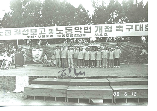 6월 12일 연세대 노천극장에서 서울지역의 3천여 노동자가 모인 가운데 '서노협 결성보고 및 노동악법개정 촉구대회'가 열렸다.