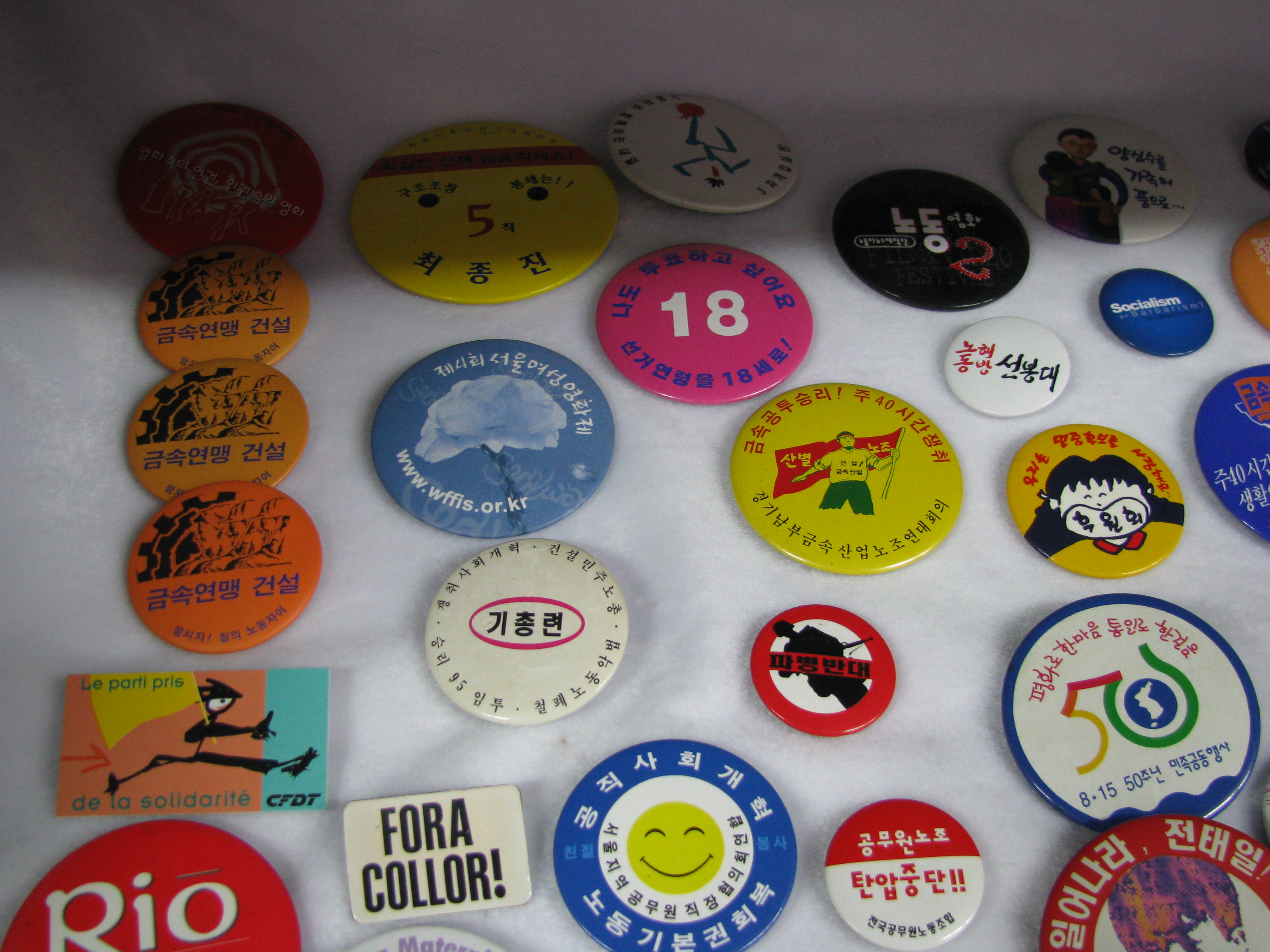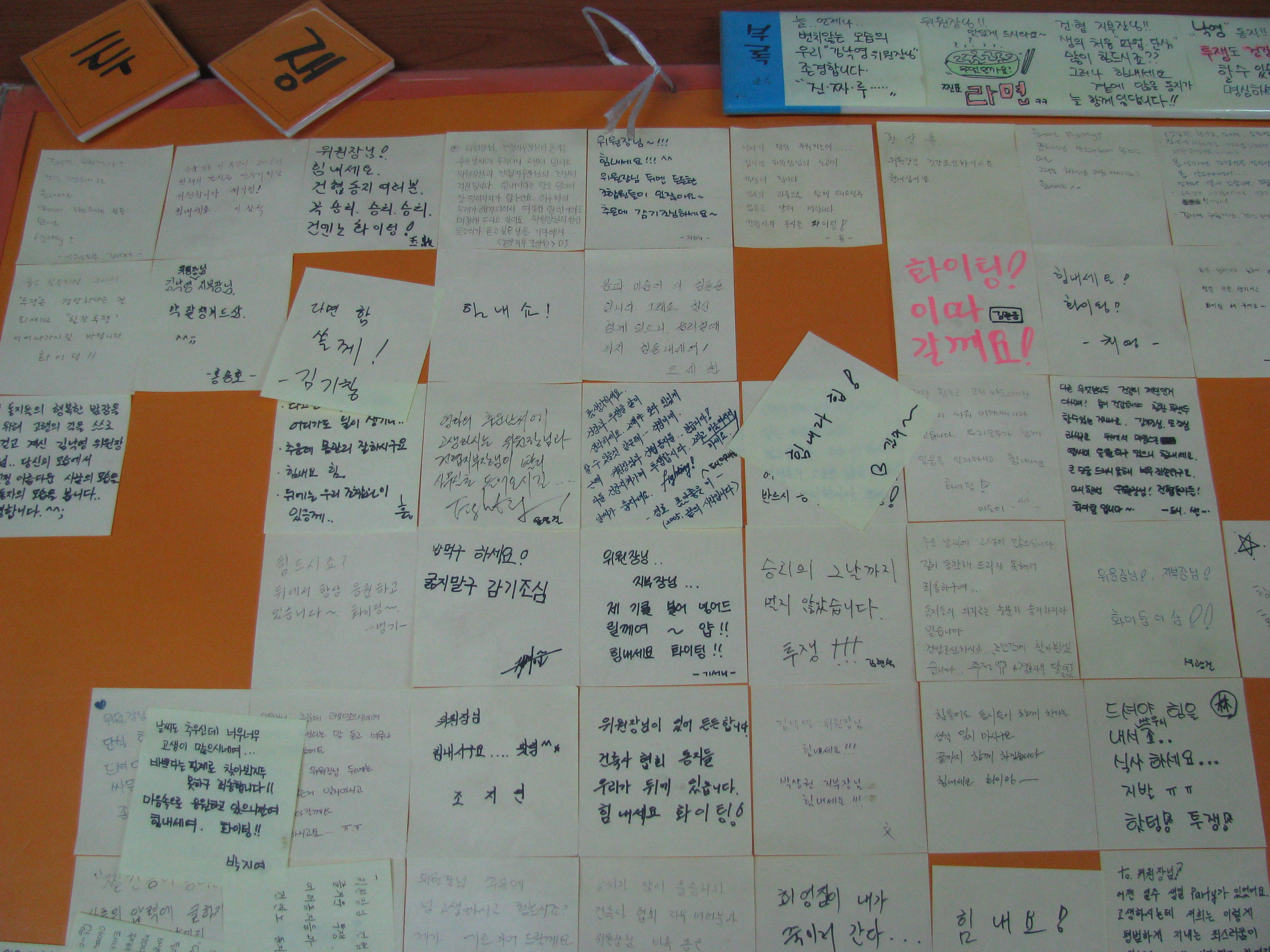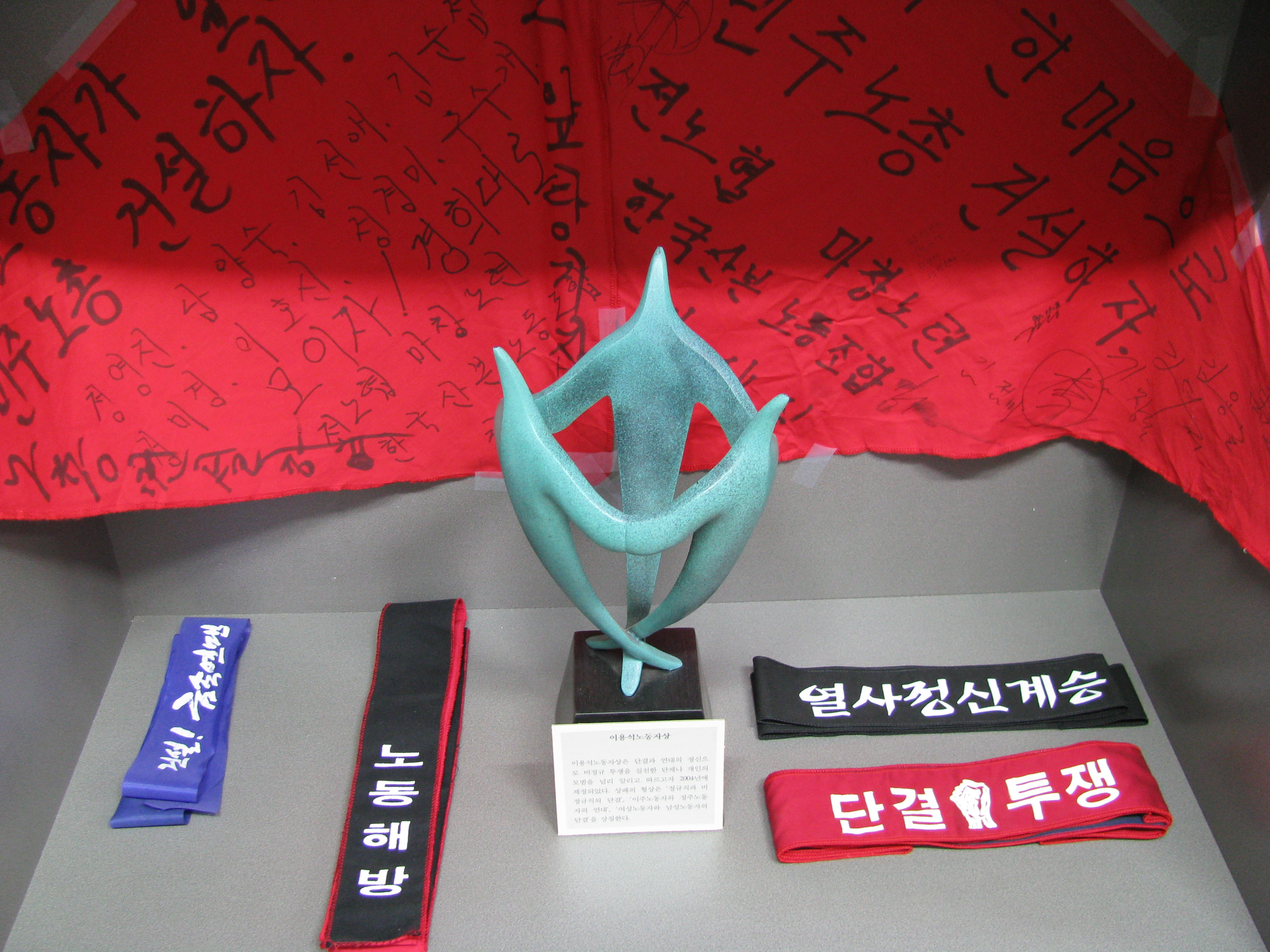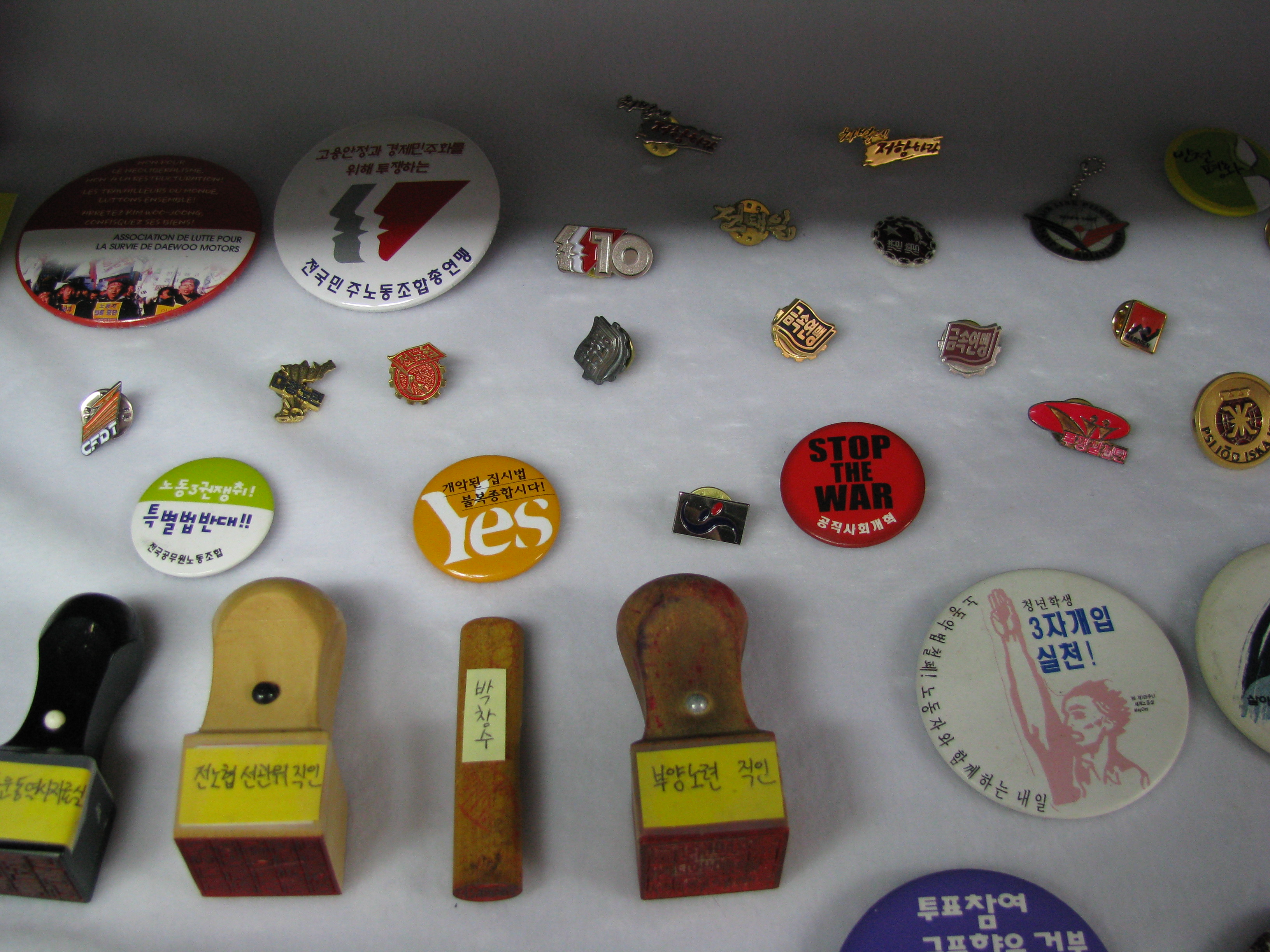 “두손 모아 만드는 노동운동 만물상”이 바로 그것입니다.노동운동의 소중한 자료는 문서뿐만 아니라 투쟁현장을 찍었던 사진, 우리가 품에 지녔던 반지나 배지도 있고, 투쟁조끼, 문선대 티셔츠, 더 나아가 현장 작업복도 있습니다. 투쟁의 상징인 조직 깃발, 투쟁시기 동지들과 주고 받았던 작은 쪽지나 메모, 손도장, 투쟁주점 티켓도 소중한 우리의 역사입니다.