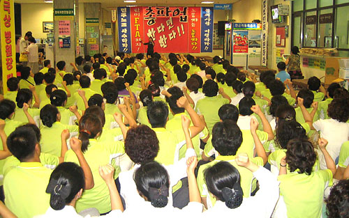 사진 1. 2006년 영남대의료원지부 총파업투쟁 당시, 병원로비에 가득찬 조합원들