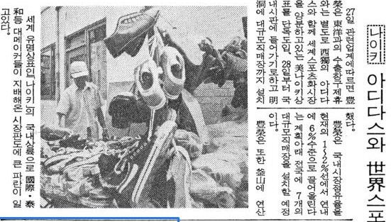 나이키 국내 제작 시작을 알리는 신문기사(경향신문 1981.8.27)