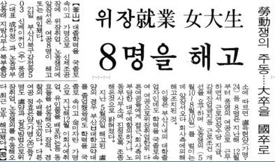 <당시 기사는 풍영 여성 노동자의 요구에 대해서는 보도하지 않고 위장취업 문제를 기사화했다.