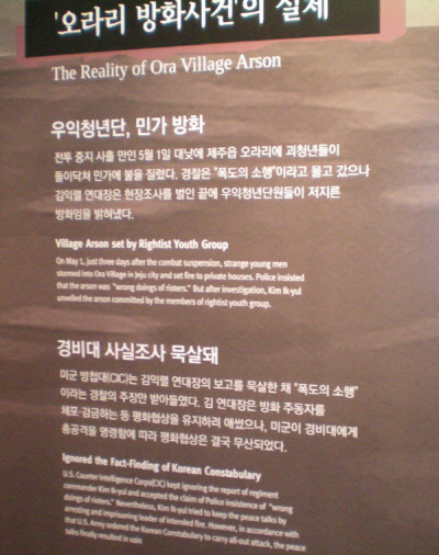 4.3평화박물관에 있는 오라리 방화 사건 설명
